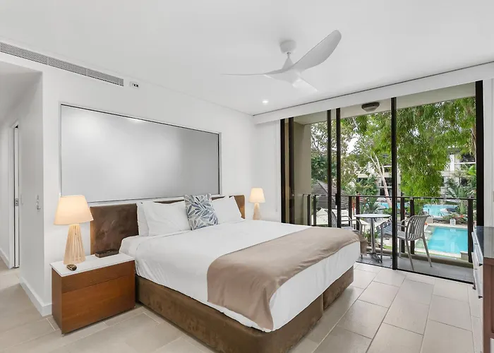 Die 40 m² großen Vista Bleu - King Suite At Temple Resort Palm Cove ist weniger als 20 Minuten zu Fuß vom Cairns Tropical Zoo entfernt und bietet verschiedene Wellnesseinrichtungen, darunter ein Hallenbad. Der Ellis Beach ist 3 km weit weg vom Apartment.